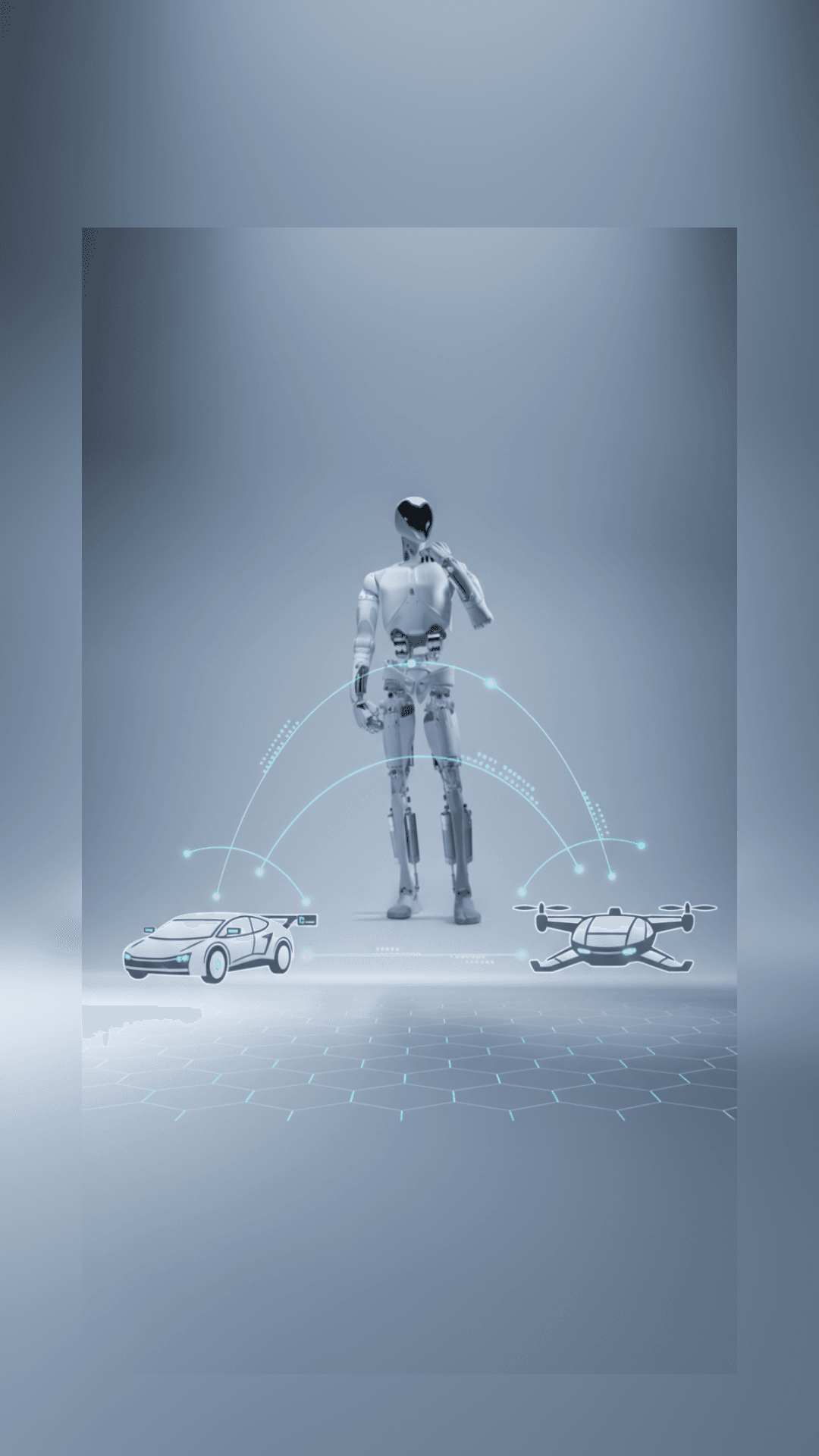 Ecossistema de IA da XPeng, integrando o robô humanoide para uso corporativo com outros veículos.